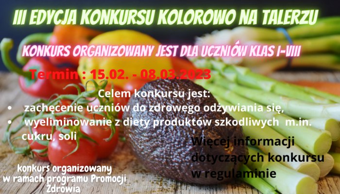 W ramach programu promocji zdrowia zachęcamy wszystkich uczniów do wzięcia udziału w III edycji konkursu „Kolorowo na talerzu”.