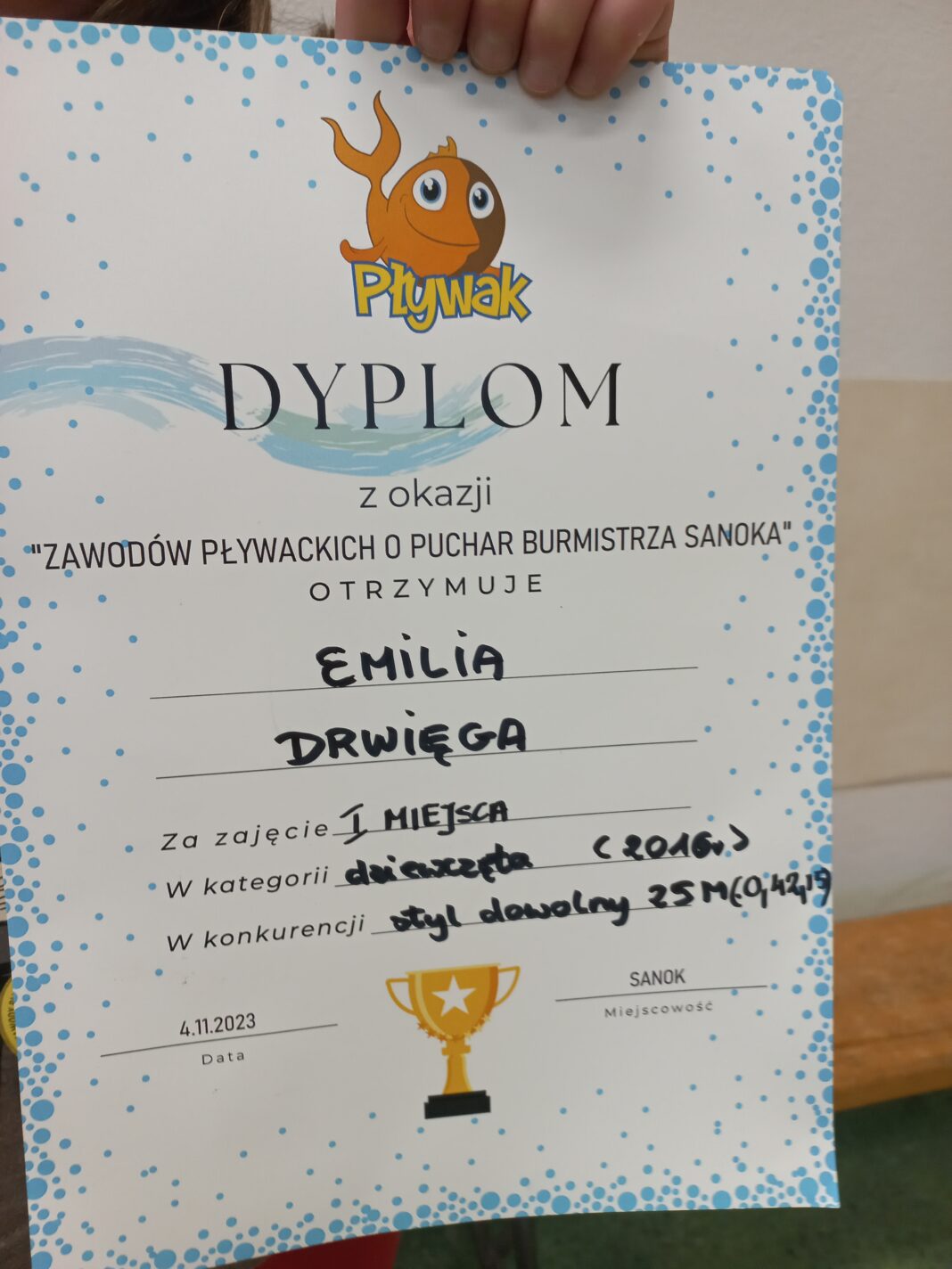 Emilka Drwięga wzięła udział w zawodach „O Puchar Burmistrza Sanoka w Pływaniu”. Miło nam poinformować, że nasza uczennica była najlepsza w swojej grupie wiekowej.
