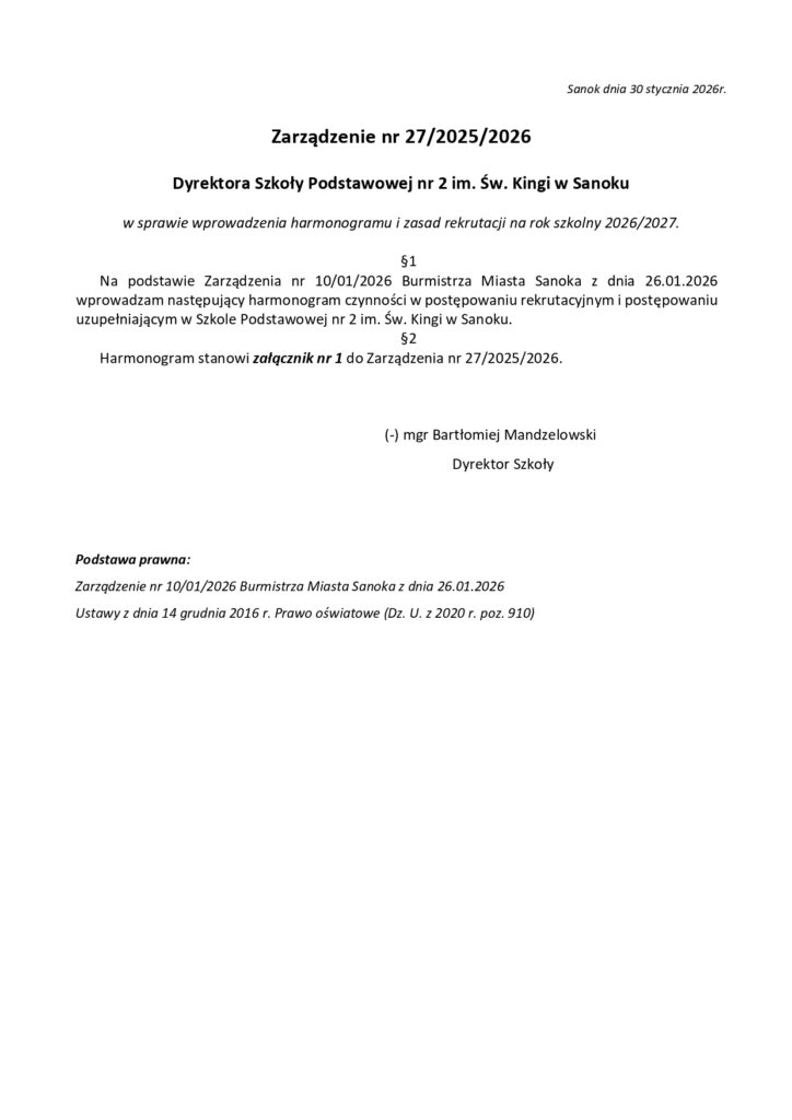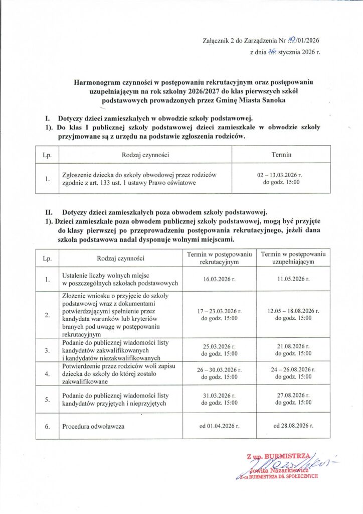 Rekrutacja na rok szkolny 2026/2027. 30 stycznia 2026 42 Informacja na temat rekrutacji do przedszkoli i szkół podstawowych prowadzonych przez Gminę Miasta Sanoka na rok szkolny 2026/2027. PODOBNE ARTYKUŁYWIĘCEJ OD AUTORA Klasa 4a w filmie reklamowym sanockiej Mediateki. Zaproszenie. Kulig kl. 7b i 7c Spotkania z Rodzicami.