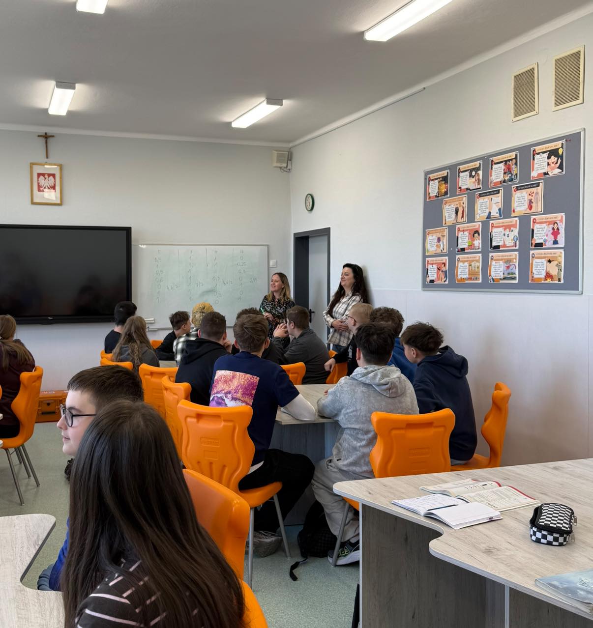 Pierwszy dzień wizyty upłynął pod znakiem obserwacji zajęć lekcyjnych oraz wymiany doświadczeń w zakresie systemowej pomocy pedagogiczno-psychologicznej. Zajęcia dla gości poprowadziła Pani Mariola Sokół. Kolejnym ważnym punktem programu była wizyta w Szkole Podstawowej w Mrzygłodzie, funkcjonującej jako „Szkoła bez ocen”. Goście z Łotwy mieli okazję poznać tam innowacyjne podejście do edukacji, oparte na budowaniu głębokich relacji z uczniami i wspieraniu ich rozwoju poza tradycyjnym systemem oceniania.