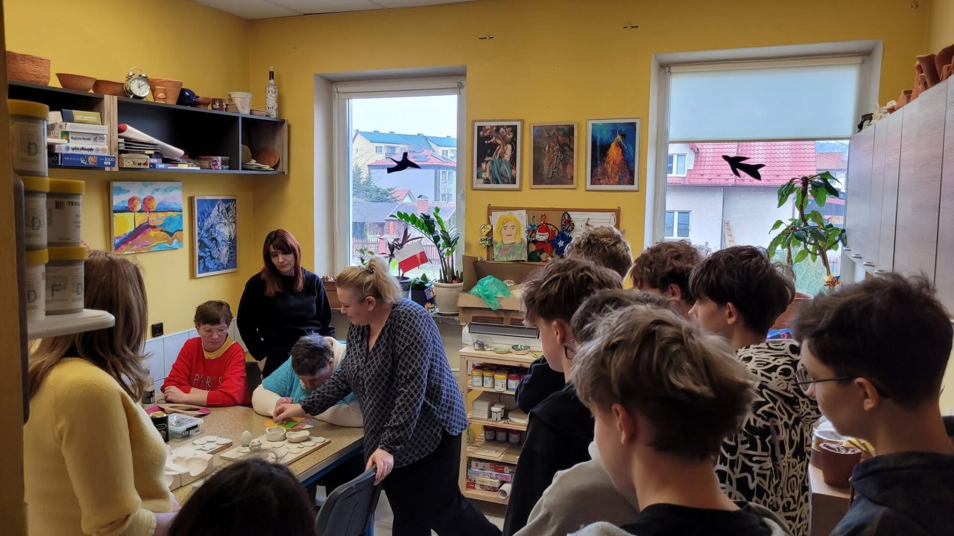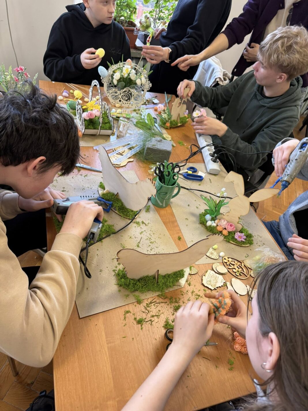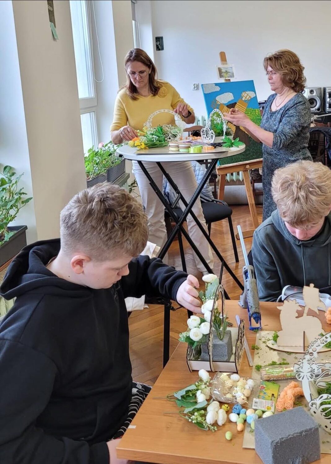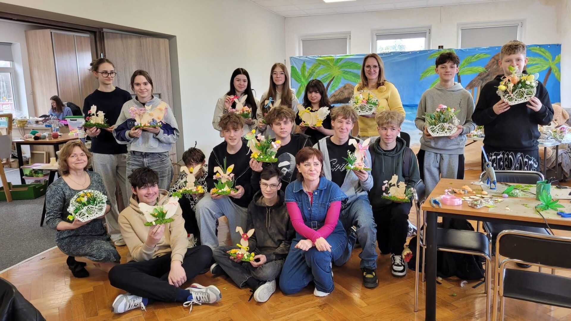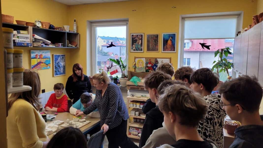W ostatni dzień wizyty goście wzięli udział w lekcji prowadzonej przez Panią Kamilę Kosztołowicz oraz Panie Edytę Michalak i Sabinę Wdowiak. Zwieńczeniem wizyty były warsztaty w Stowarzyszeniu „Świetlik”, gdzie zagraniczni goście oraz nasi uczniowie mogli zapoznać się ze specyfiką pracy terapeutycznej. Wyrazem nawiązanej przyjaźni i solidarności było przygotowanie przez młodzież z klasy 8c stroików wielkanocnych, które zostaną przekazane rówieśnikom w partnerskiej szkole na Łotwie.