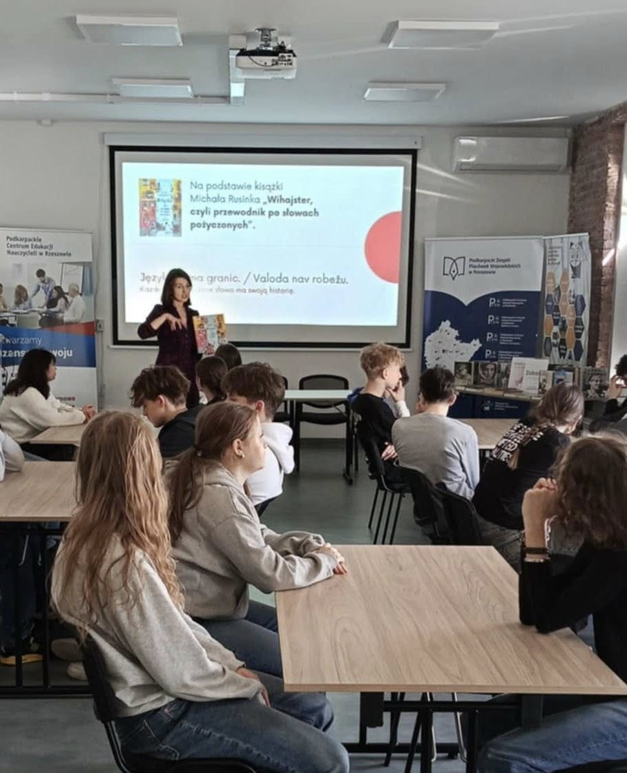 Wizycie towarzyszyły intensywne działania edukacyjne dla naszych uczniów. Klasa 8c uczestniczyła w warsztatach językowych w Podkarpackiej Bibliotece Pedagogicznej. Program obejmował: